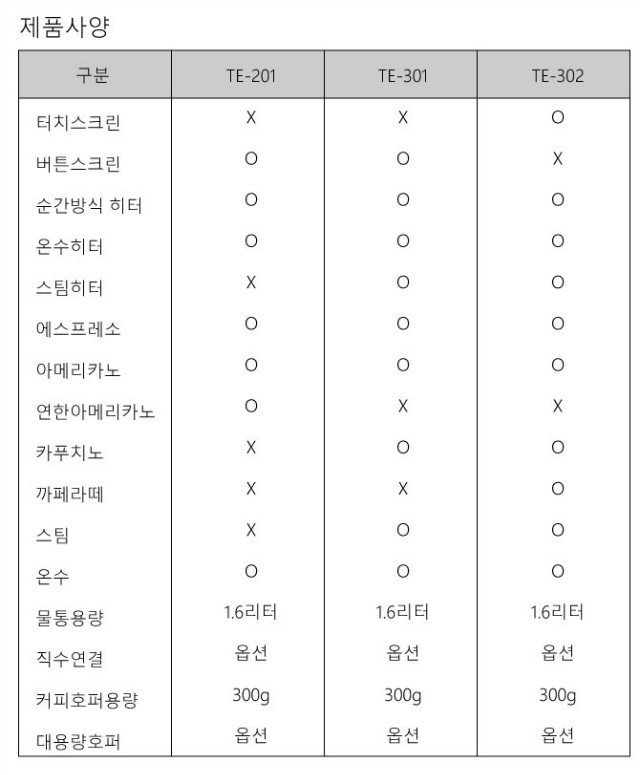 원두커피머신의 테라에서 기본기능에 충실한 TE-201 시리즈를 출시하였습니다.
